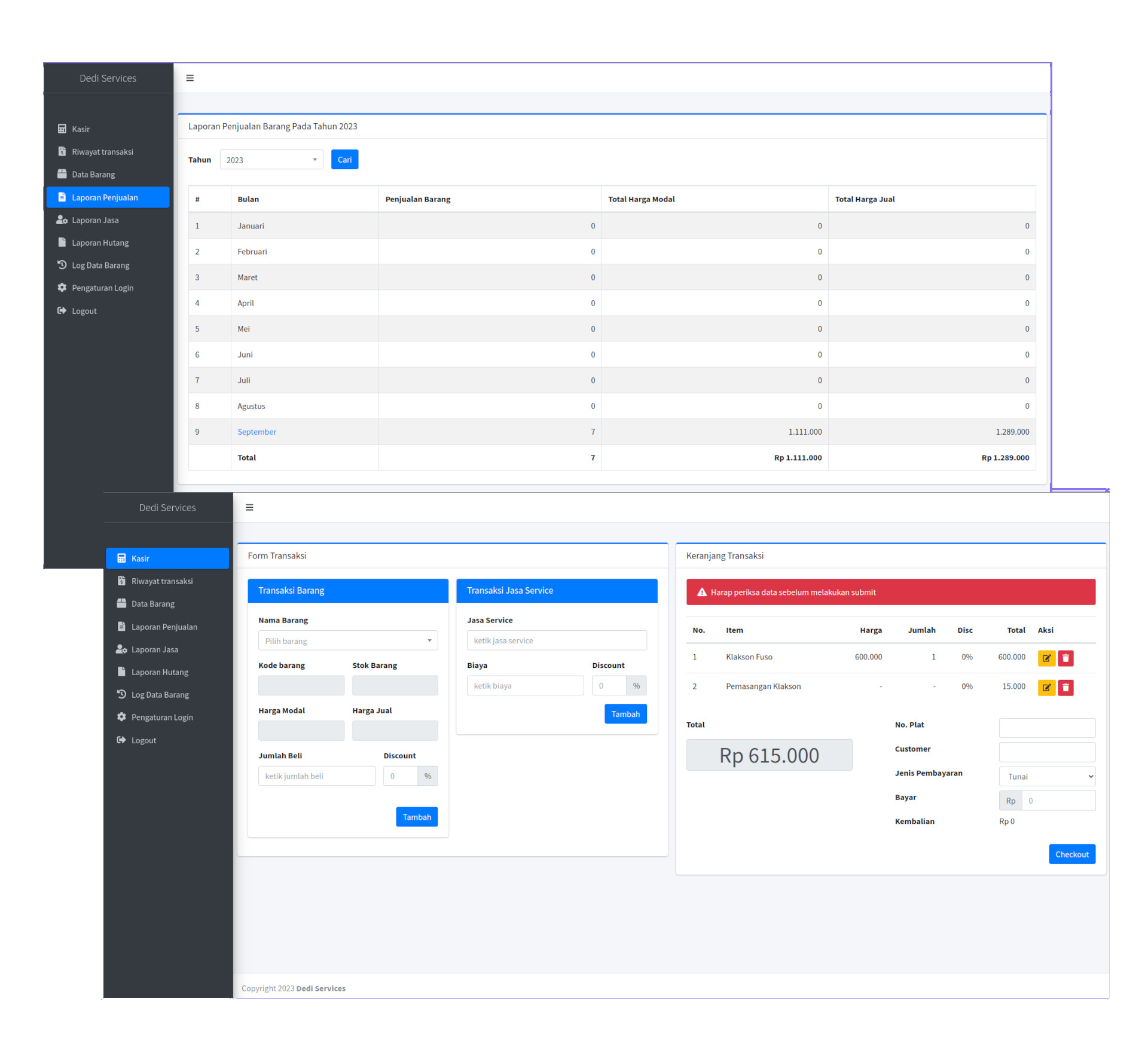 Cashier system (Dedi car service)